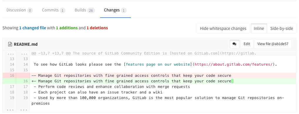?w=1while on the diffs page of a merge request to ignore any whitespace changes.